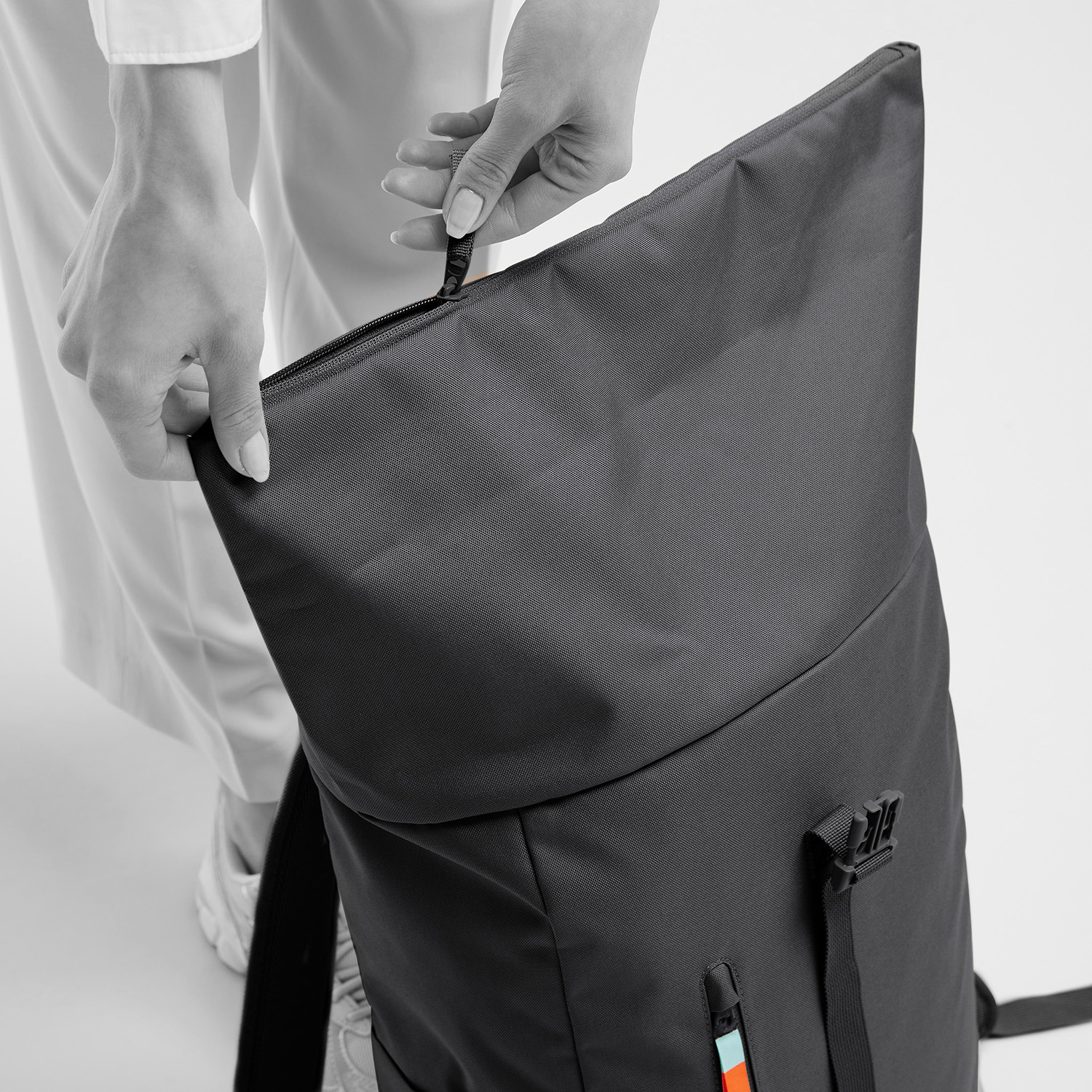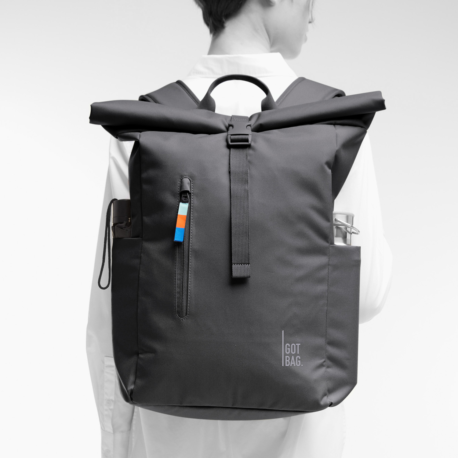 Der Rolltop Easy hält, was er verspricht: er ist ein echtes Leichtgewicht aus weichem, wasserabweisendem Material und bietet dank des Rolltop-Verschlusses viel flexiblen Stauraum. Im Gegensatz zu den anderen Rolltop-Modellen von GOT BAG ist der Rolltop Easy genäht und nicht verschweißt, was ihn wasserabweisend, aber nicht wasserdicht macht. Das Material ist wesentlich weicher, als bei den anderen Rucksäcken und fällt deshalb in seiner Form auch anders.