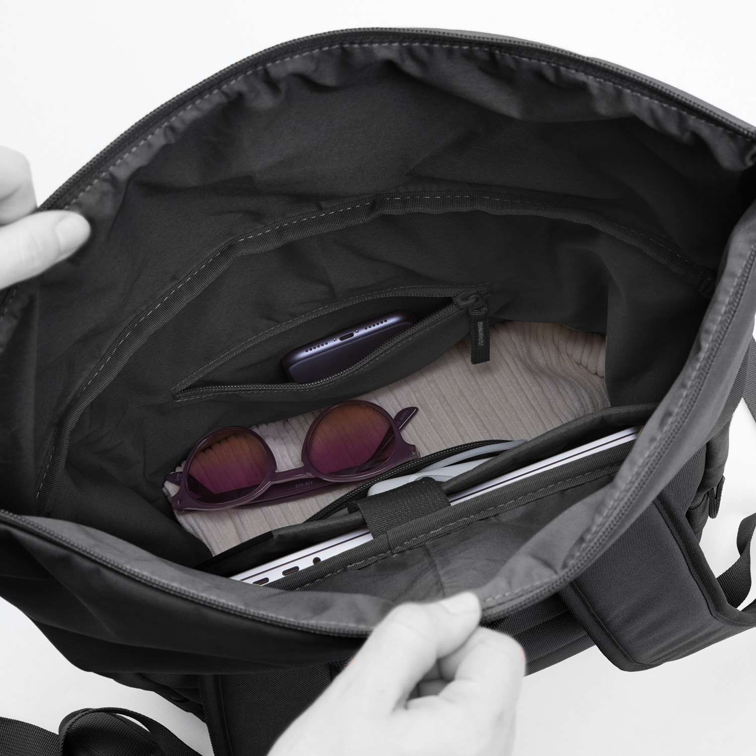 - Innenleben: 2 Reißverschlussfächer