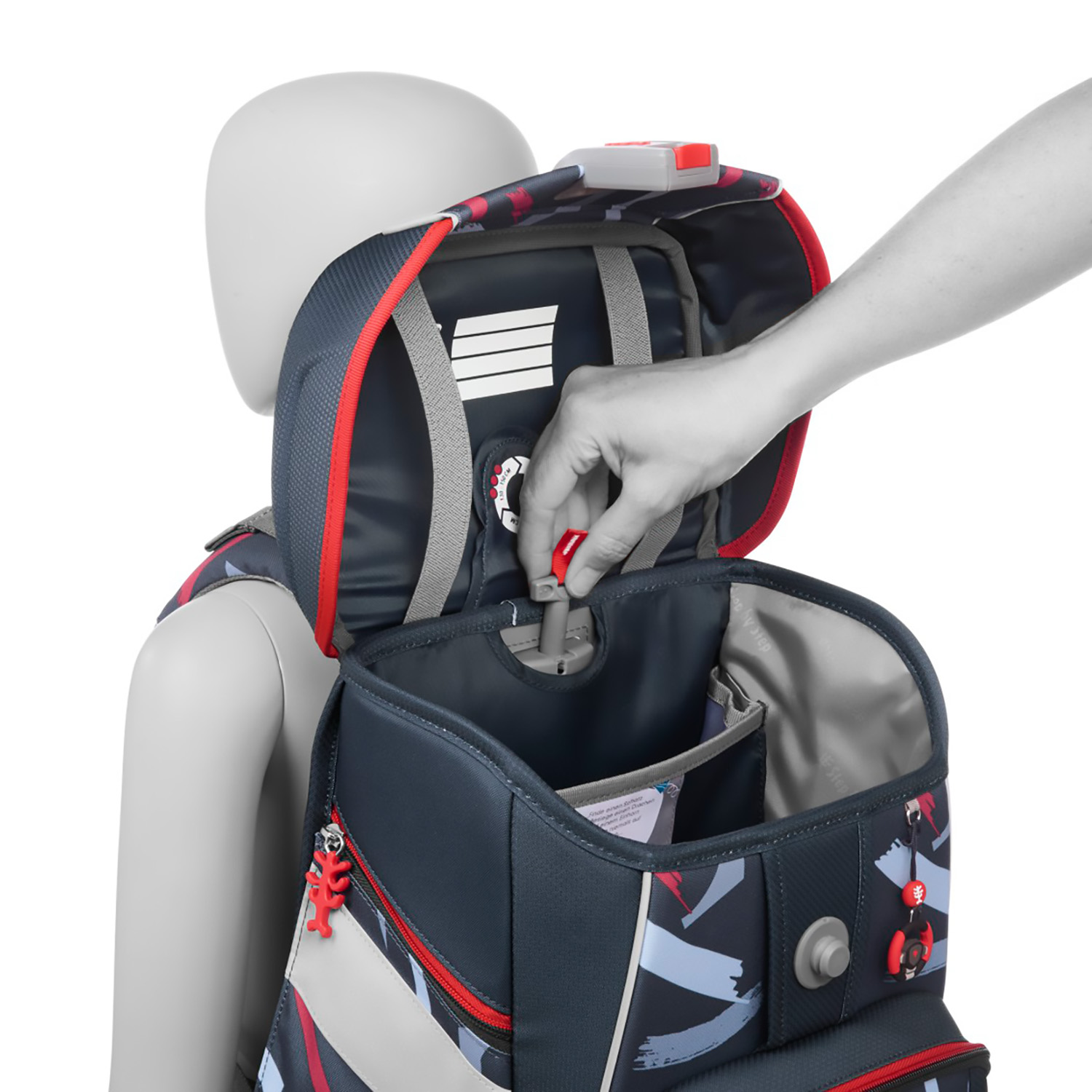Anatomisch geformte Schulterriemen und das atmungsaktive, ergonomisch geformte Rückenpolster sorgen für einen optimalen Sitz und entlasten dabei den Körper in jeder Wachstumsphase. Der höhenverstellbare Brustgurt, sowie der Hüftgurt verlagern das Gewicht des Schulranzen von den Schultern auf den stabilen Hüftbereich.